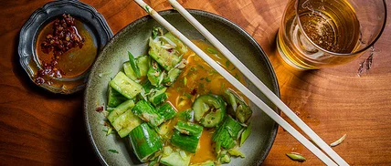 Workweek got you down? Take it out on the cucumbers. This spicy yet refreshing salad couldn't be easier to make, and leftover dressing from the bottom of the bowl is great for pepping up a mound of plain white rice.