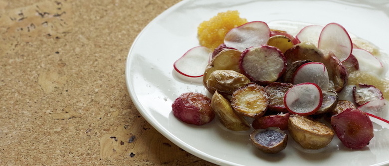 ③ Side Dish: Roasted Radishes and Marble Potatoes with Charred Onion Vinaigrette