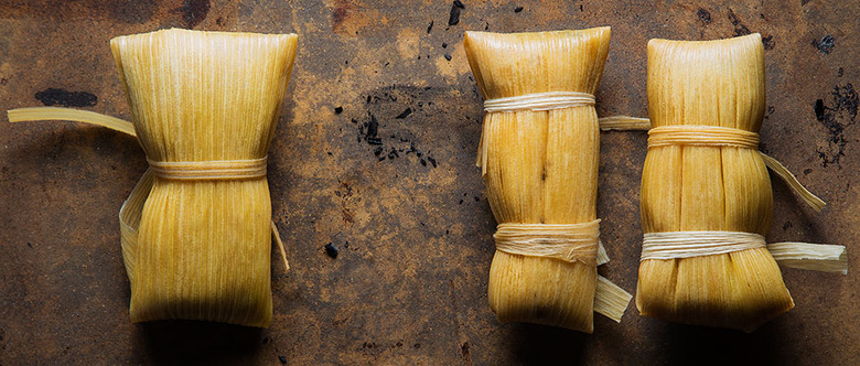 Feed a crowd with these impressive hand-rolled tamales. You can fill them with whatever you have on hand (or left over from the weekend), but we're fond of these salsa-, pepper- and chicken-filled bundles.