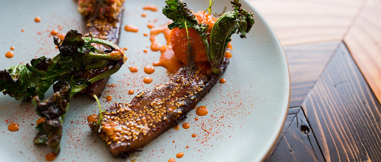 That means connecting with nearby farms to get whole animals—they go through three pigs, three lambs, 25 ducks a week—they break down in the restaurant and building his own hyperlocal pantry from the ground up with ingredients, some of which he's foraged himself. There are currently 150 on the shelves, ranging from watermelon molasses to popcorn miso to sorghum vinegar, which Langhorne puts to use on the dozen or so dishes he dreams up each day. Many of those ideas are sketched out on the chalkboard walls of the cozy restaurant.