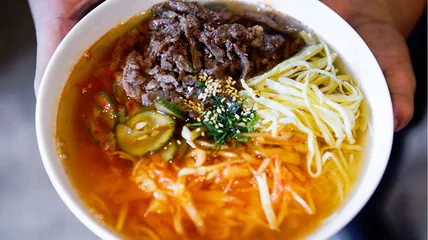 "We don't overdo anything and just keep it simple," Vecheslav Kim, the teenage grandson of the café's founder and chef, explains. "There are lots of components in [the kuksu, for instance]. Without the spice, you can taste that," more so than in a spiced-out guksu.
