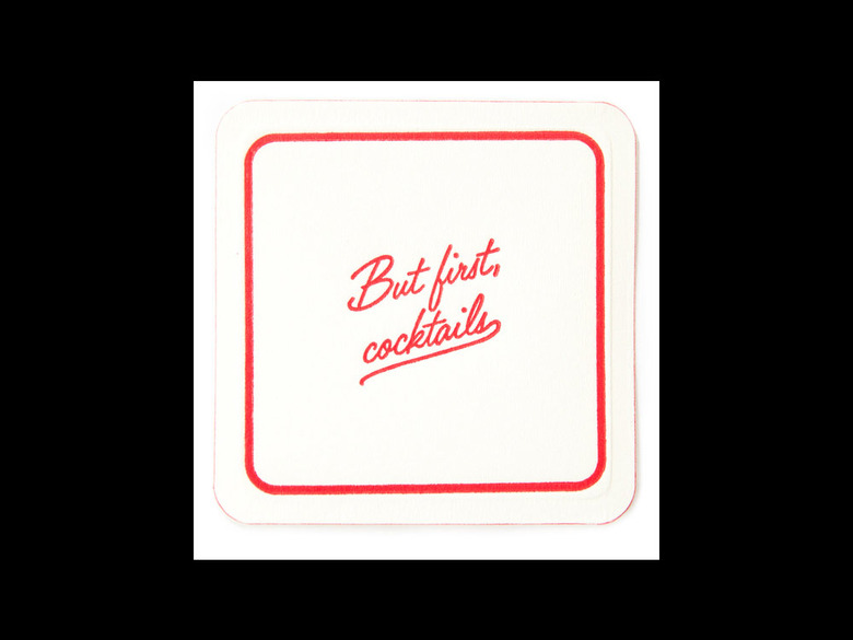 Don't let condensation crash the party. Keep your host's coffee table (and sanity) in check with a set of these, printed for guests to rest their cocktails.