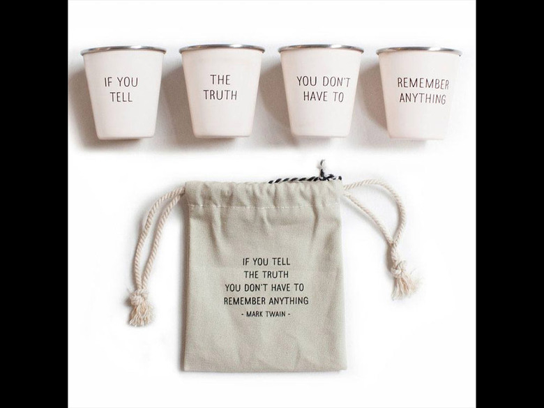 There's nothing like a Mark Twain quote to get the party going. And, with a convenient drawstring bag for safekeeping or transportation purposes, your hosts won't even have to remember where every glass in the set is hiding.