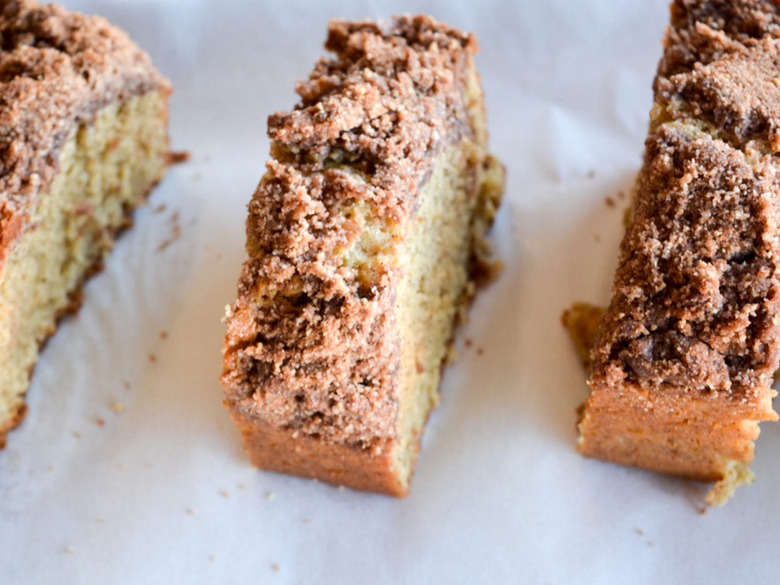 This is not your average coffee cake: De La Paz coffee cake is made with brown sugar and strained labneh yogurt butter. Brown sugar streusel makes for extremely moist bites that are not overly sweet.