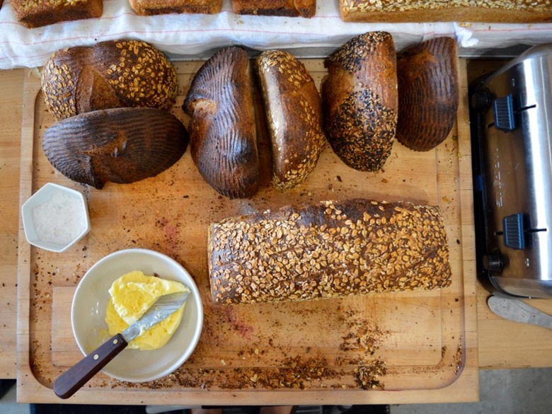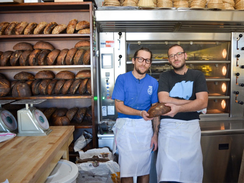 Once a large, wooden peel pulls them from the oven, the chefs slice the loaves for toasts topped with almond butter and date honey, avocado and radish, and house-made persimmon jam. And, while bread is the main event at the bakery-meets-café, there are also cinnamon buns topped with tart labneh icing, inspired by Amsalam's Israeli background, and crumbles made with fresh, local farmers' market fruit and brown sugar.