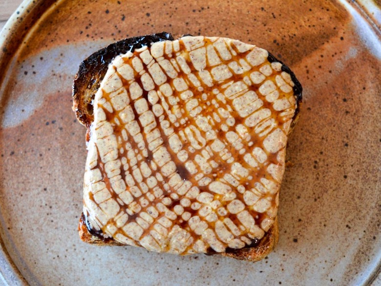 Toasted whole wheat bread is slathered with house-made almond butter and drizzled with date butter, creating a more grown-up play on PB&J.