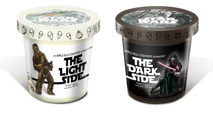 With galaxy-high hype for The Force Awakens, we agree. But there's no blue milk here—just four-packs ($36 each) of freshly made small-batch pints, two each of The Light Side and The Dark Side varieties. Ward off evil with The Light Side's smooth marshmallow ice cream speckled with homemade crispies. Then embrace The Dark Side with chocolate ice cream, espresso fudge brownies, cocoa crispies and white chocolate pearls—because you can always find some light in the dark.