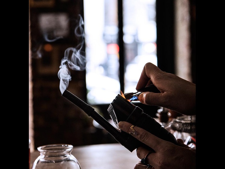 Elsewhere, bartenders are finding other ways to use smoke in their drinks. American Cut in Tribeca serves a plank-smoked old-fashioned, in which a maple plank is set ablaze and then a glass is placed on top of the residual smoke to flavor it. In L.A., Gracias Madre serves several smoked cocktails, including the tongue-in-cheek Up in Smoke, which is smoked inside of a bong instead of a blender.