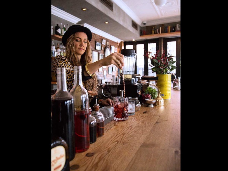 Angela Laino of NYC's The Wayland and Goodnight Sonny has been mixing up a storm of next-level smoked cocktails. At both of her bars, you can order smoky drinks such as the I Hear Banjos, Encore, made with apple-pie moonshine and presented with a stunning globe of smoke on top. Sipping on one of these is like being transported to a campfire— a campfire that's inside a cozy NYC cocktail bar where you can order food until 4 a.m.