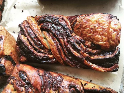 Further south, the team at Travis Lett's Venice Beach bakery Gjusta has been making babka with leftover scraps of croissant dough for several months. "It's very much pieced together," baker Sasha Piligian says. The dough's rolled in cinnamon sugar (or sometimes laced with chocolate), spiraled and baked into a loaf that pulls apart easily. "If we don't have babka on a certain day people freak out," Piligian adds.