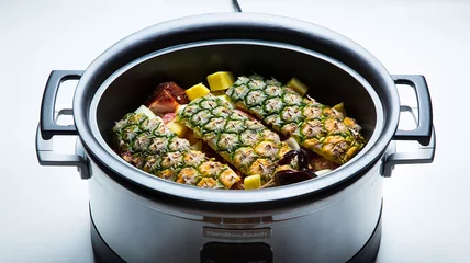 Our delicious Slow Cooker Al Pastor takes all these flavors and transfers the process to the slow cooker. The pork slow-braises on high for five hours with lots of pineapple and spices and its own juices. Pineapple skins are placed on top to keep the meat moist and also serve as an ode to the pineapple that usually sits on top of the spit. When it's finished braising, the meat is so tender it practically shreds itself into soft strands that should be tucked into charred tortillas. Top with some of the braised pineapple, a pinch of flaky salt, cilantro, lime juice and lots of sour cream.