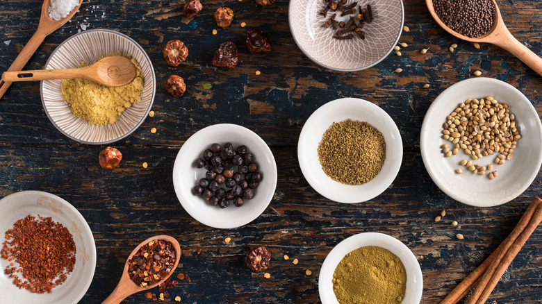 Cooking without spices is like living a life with no excitement. Spices not only add flavor, aroma, and color to dishes; some, like turmeric, cinnamon, and cayenne pepper, are said to have a host of health-boosting properties, according to Johns Hopkins Medicine. Unfortunately, many of us may be using spices in a way that doesn't do them justice; one of the ways we do this is by buying pre-ground spices, which are, more often than not, way past the point of potency. The workaround for this is to buy whole spices — peppercorns instead of ground pepper or whole seeds like cumin and coriander — then put them in a skillet and toast them.