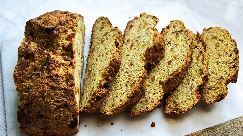 It wasn't always the giant dry monstrosity that likely comes to mind—rather, it was (and remains) a daily staple in Ireland. But somewhere along the trip across the Atlantic and into cellophane bags in our supermarkets, it picked up passengers like eggs and caraway seeds, turning into a giant scone-like baked good. That's why this year, in honor of St. Patrick's Day, we're giving it a face-lift with this nutty brown loaf, fortified by sweet golden raisins and speckles of chopped rosemary (see the recipe).