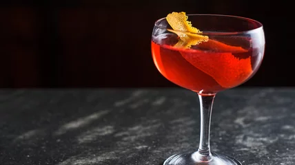 Add 1 ounce of Campari, 1 ounce of sweet vermouth, 1 ounce of bourbon and ice to a pint glass, and stir well. Strain into a chilled coupe glass and top with Champagne. Twist an orange peel and run the peel around the rim of the glass, then add to the drink as a garnish.