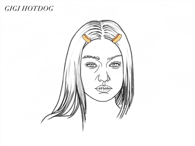 Gigi really is dominating the world, with Zayn on her arm and these tube steak-shaped barrettes in her hair.