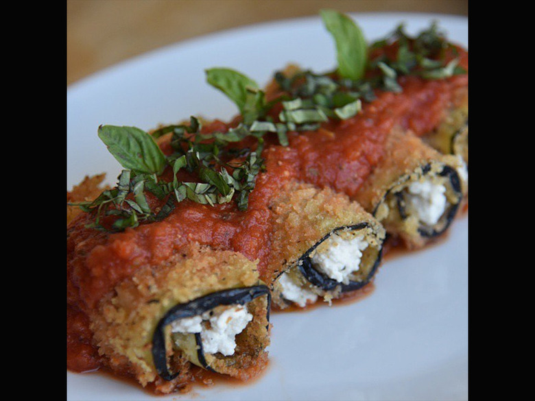We're confused by how cheesy and creamy this eggplant rollatini looks despite the lack of dairy, but we're definitely not mad about it.