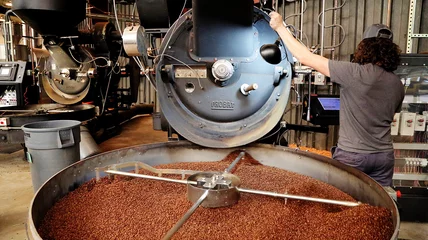 I stopped by last week to see how the beans go from burlap sack to Counter Culture-stamped bag. When the green coffee beans arrive, they start off stored in a temperature-controlled room. This is new for the company, a move that extends the coffee's shelf life—sure to help during humid Southern summers. Then they go through the roasting process, which involves either a new Loring roaster or one of the center's vintage machines. Knowledgeable coffee pros stand by the machines and keep close eye on the process, occasionally removing a sample to determine when the batch is finished roasting.