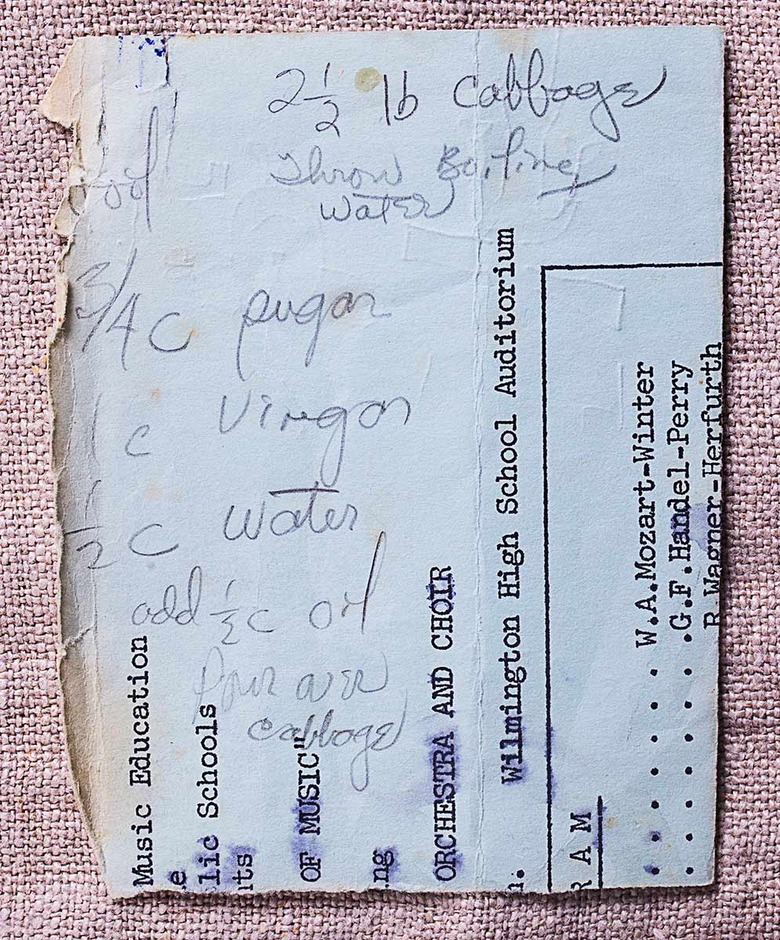 A recipe hastily written down on a piece of paper from my mom's high school. —Devra Ferst