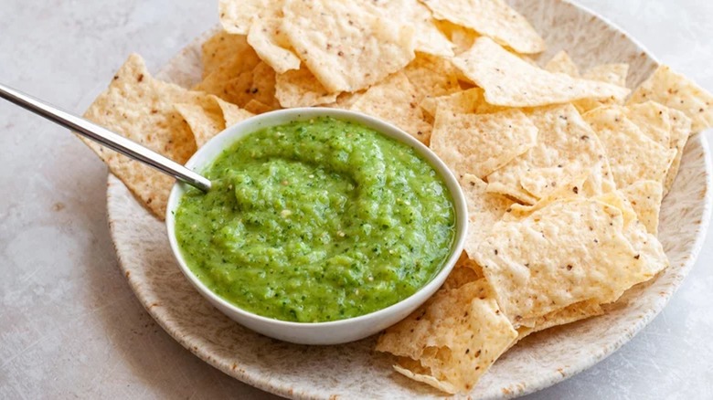 The versatility of a fresh salsa verde makes it a must-have condiment that can readily accompany any dish on the Cinco de Mayo table. Tangy tomatillos, chopped jalapeños, vibrant white onion, and cilantro are blended in the food processor to make a light salsa made creamy with ripe avocado.