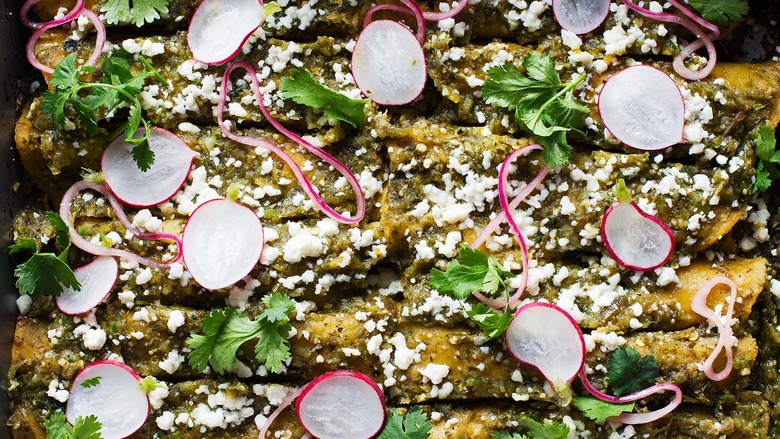 Sprinkle the enchiladas with fresh chopped cilantro and enjoy this delicious dish with a watermelon salad or a side of Mexican rice.