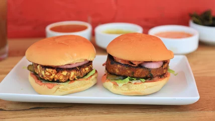 Today marks the debut of the curry burger. Flavors include chicken tikka masala, salmon Chettinad, paneer butter masala and the veggie burger with cheddar cheese.