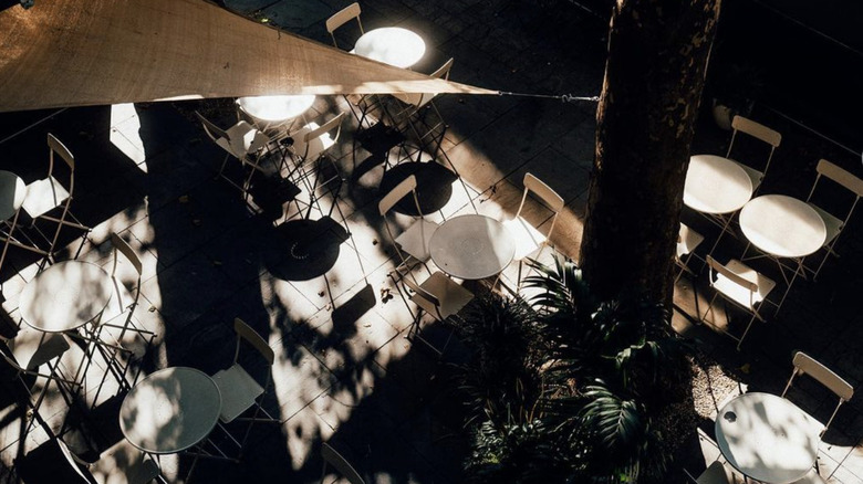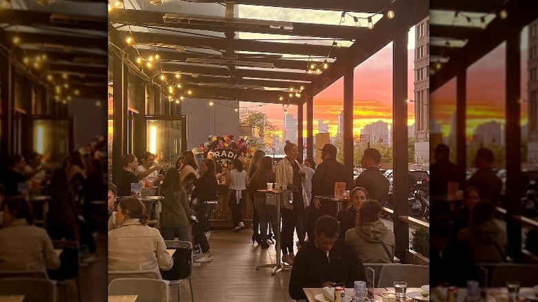 Caliza NYC is an upscale Mexican restaurant in Tribeca with a fast-casual sister restaurant next door, aptly named Caliza Next Door. The outdoor seating at Caliza NYC sits beneath a glass roof. This patio is off to the side of the restaurant, and it may just rest a foot or so above the sidewalk, but when the sun starts setting, you almost feel like you're on a rooftop: There are views of skyscrapers in the distance, and everything gets hit with a delicious golden light.