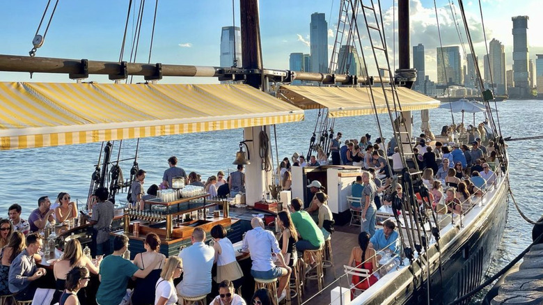 If you want to take your outdoor dining to a whole other level, book a slot at Grand Banks, an oyster bar onboard a literal boat. To find this place on Google Maps, just search Sherman Zwicker, the name of the historic wooden schooner upon which you'll undertake your oyster-tasting journey on the Hudson River.