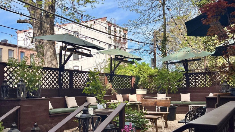 This might just be the kookiest outdoor dining on the list. Bricolage is a Vietnamese restaurant on Park Slope's 5th Ave with a garden space that is what we can only think to call overgrown-bookstore-core. It's covered in vines, old clocks, broken televisions, and a plethora of lamps. If you're looking to truly forget where you are — and maybe even feel like Alice in Wonderland — there's no better garden to go.