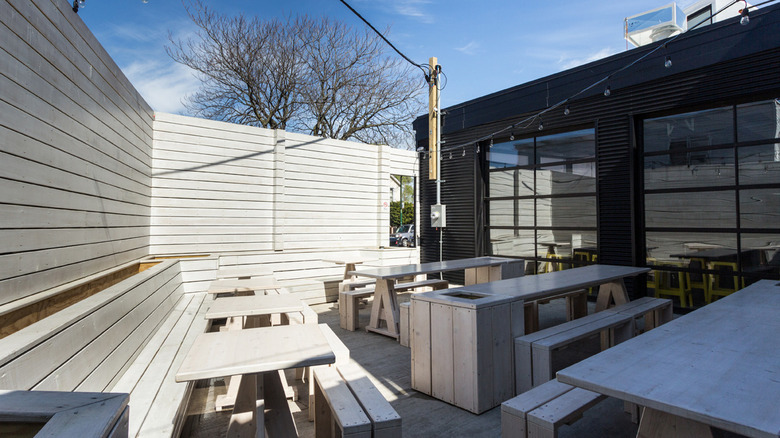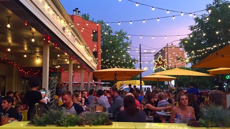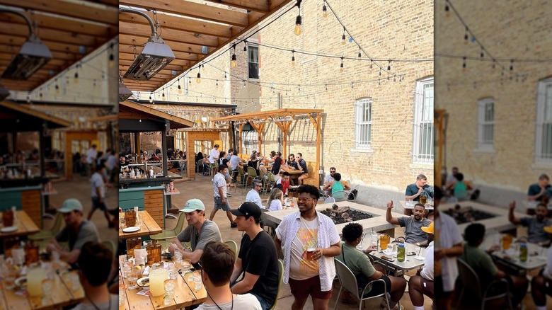 Unlike other outdoor dining destinations around the city, Pilsen Yards' patio is open all year. A heated floor and overhead heaters keep you comfortable in the open-air space. Planters line a brick wall while wooden pergolas overhead provide some shade. With 170 seats on the patio, you can gather at a table, post up at the outdoor bar, or lounge near the fire pit. While the patio is family-friendly by day, the atmosphere turns up for vinyl DJ sets at night from Thursday to Sunday. Select "outdoor seating" to reserve a patio table.