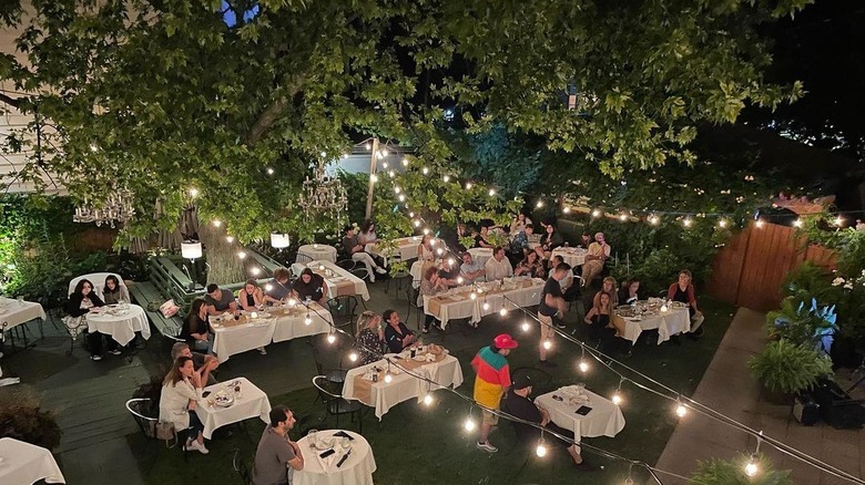 Celeste's garden is an oasis of warm brick walls covered in ivy. It gives off an English greenhouse feeling with a retractable roof and Victorian-inspired furniture. The vibe, however, is more bottle service than afternoon tea. While the bar area can get packed with partygoers, it's possible to find respite from the revelry by snagging a spot on one of the loveseats closer to the staircase. Sip on classic cocktails or perhaps some bubbles and nosh on a fried chicken sandwich or cacio e pepe arancini. Reservations are only available for the supper club, so expect to wait in line to enter later in the evening.