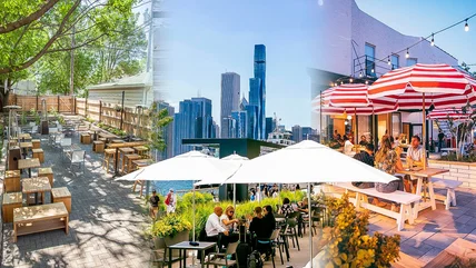 In a city known for its long winters, Chicagoans savor their sunny weather. They maximize patio season by dining outdoors from the scenic banks of the Chicago River to neighborhood courtyard nooks strung with lights to buzzy rooftops with skyscraper views. Outdoor dining season in Chicago is generally May through October. If you're looking to make the most of the warmer months, here are the best places to dine outdoors in Chicago.