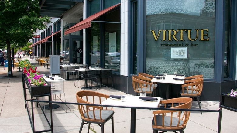 The dining room is always full at Virtue, especially since Chef Erick Williams took home the James Beard Award for best chef of the Great Lakes region. Fortunately, the sidewalk patio offers more opportunities to enjoy his Southern American fare. Planters adorned with flowers add a pop of color to the sidewalk setting on a shady stretch of 53rd Street. Whether you're dining inside or al fresco, reservations are a must at Virtue.