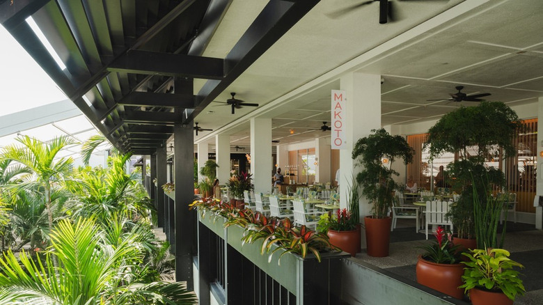 Makoto, a Japanese restaurant in Bal Harbour, has been around for a long time, but it hasn't always been so beautiful. A recent upgrade created a light and airy space inside and a relaxed outdoor space where guests are met with 1930s-style lawn chairs as they sip their drinks and enjoy their meals under the palm trees.