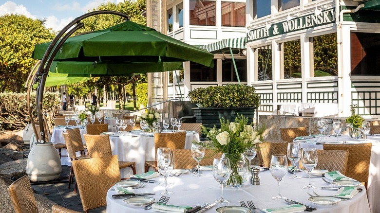 Smith & Wollensky has plenty of seating indoors, which is odd, because there's hardly ever anybody there. Rather, the crowds that flock to this canal-side restaurant tend to gather at the outdoor tables or relax at the outdoor bar, where they can see the big cruise ships setting sail for parts unknown.