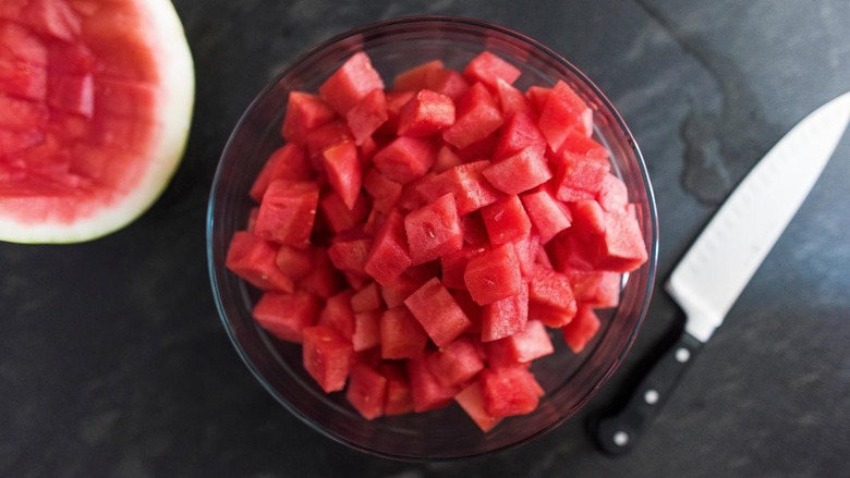 As summer looms with its promise of hot days and lots of picnics, we bet there's at least one or two watermelon salads in your future. As you heave a watermelon the size of a small toddler into your shopping cart you're likely not thinking about the work required to break down all that fruit. Luckily, cubing watermelon is simple to hack with just a few key moves. Here's how to do it: