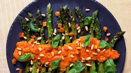 ⑦ For the Health Nut: Grilled Asparagus with Apricot and Pine Nut Romesco