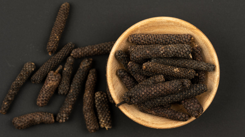 Used for centuries in Indian, African, Indonesian, and Mediterranean cuisine, the long pepper is not as common as it once was, especially outside India. Its fall from prominence is largely because it is hard to grow outside India and the wide-scale availability of black pepper. However, you'll still find it used in Indian, North African, and other regional Asian cuisines. When made traditionally, spicy rasam soup, nihari stew, and lentil curries all use long peppercorns. If you want to experiment with long pepper at home, it pairs wonderfully with barbecued meats.