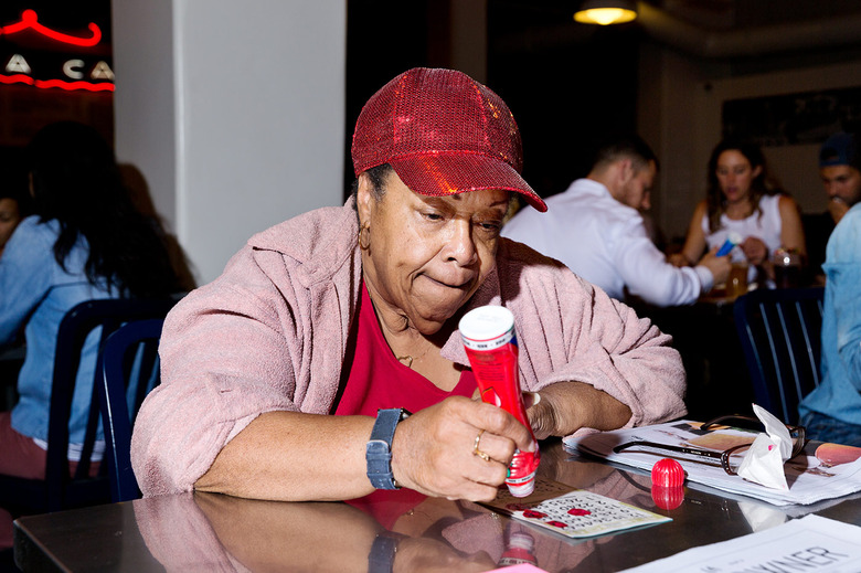 Bingo players ranged from little kids to families and couples on dates to one lady who sported perhaps the best bingo-going hat we've ever seen. She said she hadn't been to the market since she was a child.