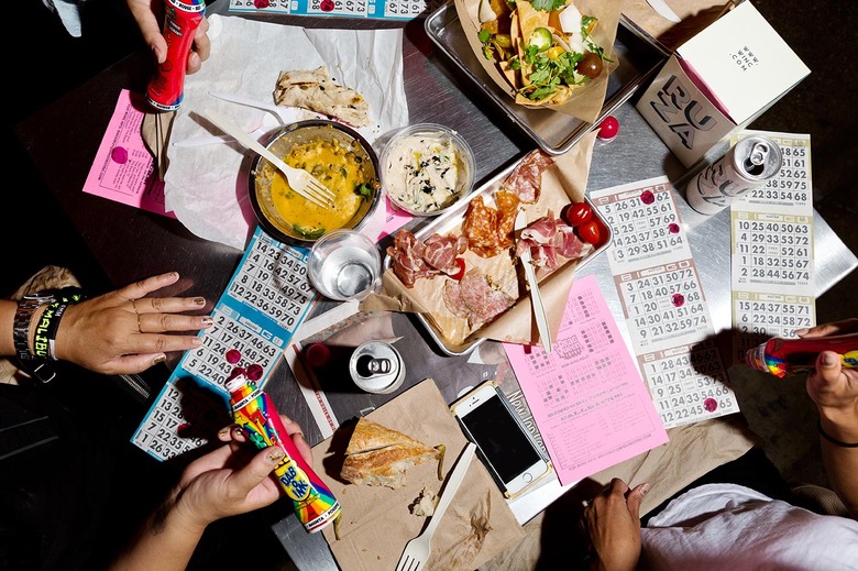 By evening, things used to settle as the vendors closed up shop. But starting in early June, that changed, with the market hosting nightly events ranging from live music to trivia to drag queen bingo hosted by Bingo Boy, which Angelenos might know from West Hollywood's iconic Hamburger Mary's.