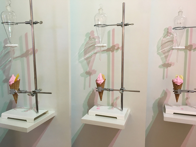 Right off the bat, you're handed a cup of ice cream, which in this killer summer heat, is the most welcome gift you could ever receive. Flavors rotate and come from favorites like Blue Marble, McConnell's, Morgenstern's and more. Then you're handed a made-to-order edible balloon filled with helium. In case you've never been to a birthday party before, someone stands at the ready to demonstrate just how to get that squeaky voice.