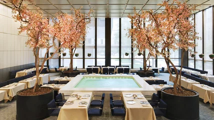 Last night, the restaurant played host to designer Tom Ford's Fashion Week show, where a catwalk flowed down the stairs and then atop the pool.