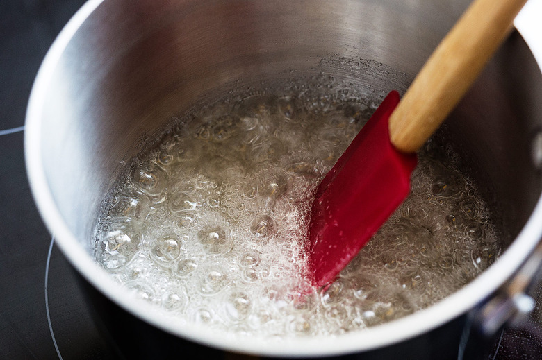 Our recipe calls for an Italian meringue, which means first making a sugar syrup that reaches 234º to be streamed into the egg whites.