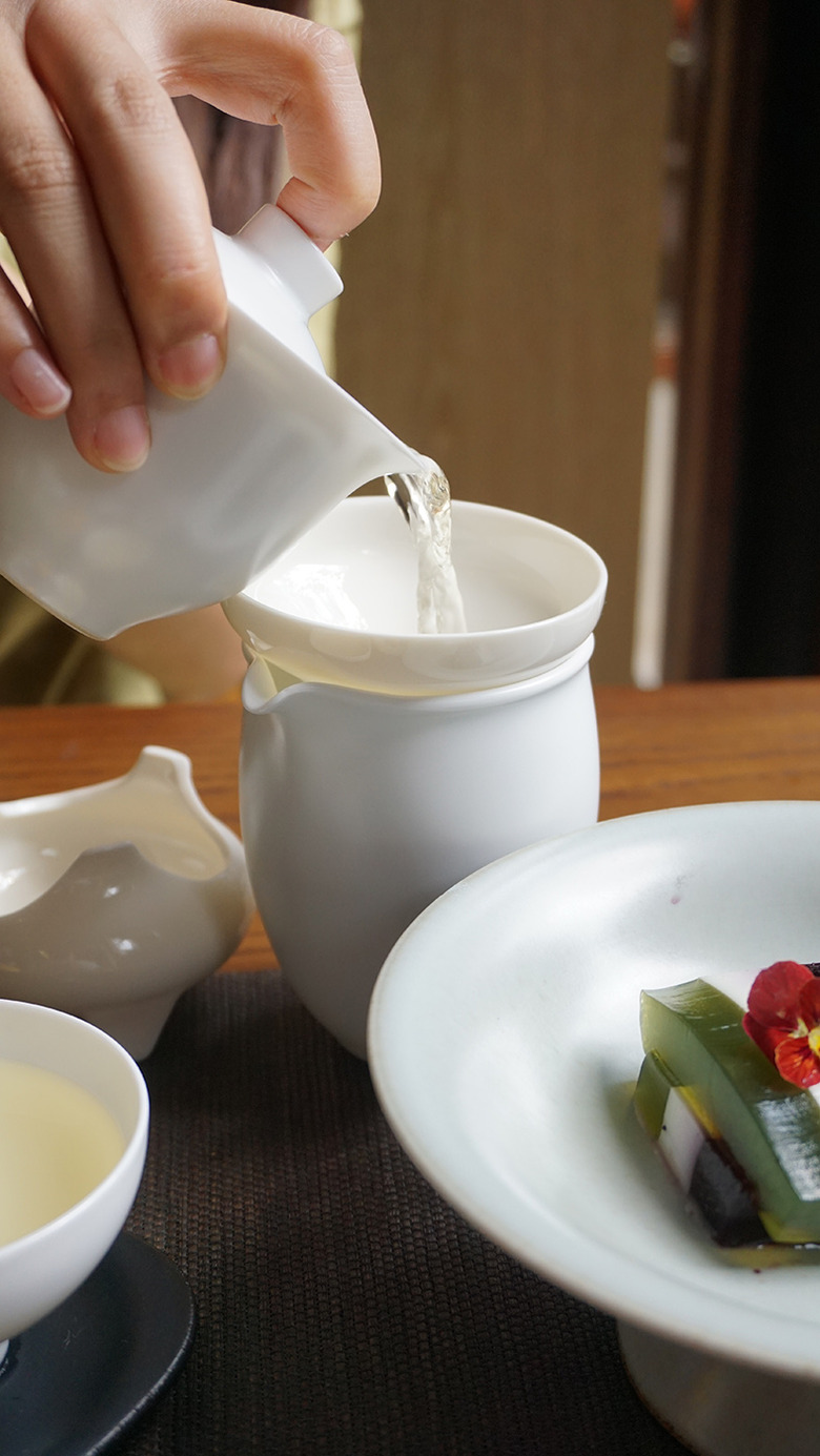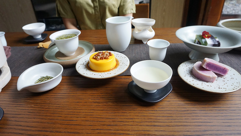 Prime time. Now that we have the food covered, let's talk about the main event: tea. While you can choose any pot of tea from a "tea bible" featuring more than 50 options, the Bamboo Green variety, known as Zhu Ye Qing, is the front-runner.