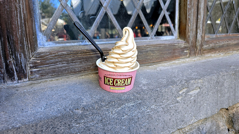 While the soft serve began as a true delight, just like the Hot Butterbeer, after a few bites, it became too rich for me, and I couldn't finish it. Maybe if I'd gotten it in a cone instead of a cup, the cookie-like texture of the cone would have cut the richness of the soft serve. Guess I'll just have to return to Hogsmeade to find out.