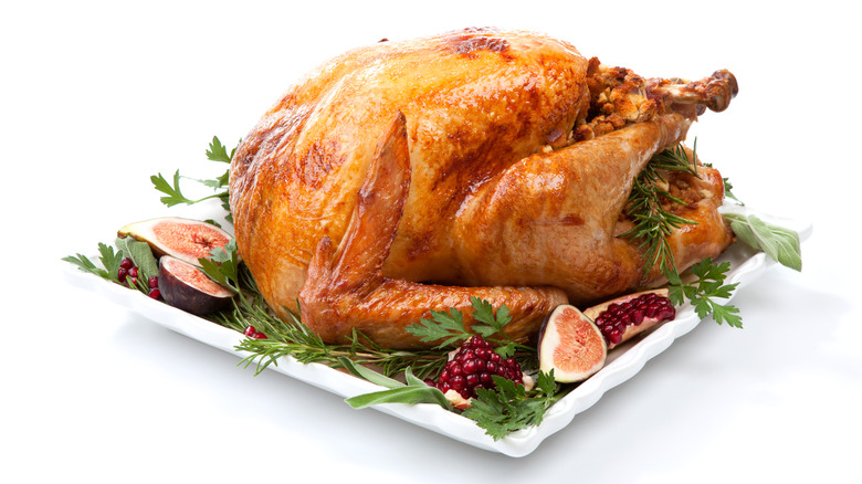 If you make your turkey and gravy ahead of time on Thanksgiving day, you can take advantage of Ina Garten's turkey hack. The renowned chef recommends slicing the turkey ahead of time and putting the slices in a gravy-filled, oven-safe dish. About 15 minutes before you're ready to serve your turkey, place the dish in the oven to warm up. The gravy keeps the turkey moist and flavorful — characteristics that will carry over to when your turkey is sitting on the table waiting for folks to snag a slice.