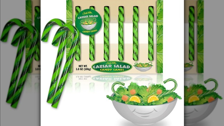 What this massive list of wacky, mostly savory, and occasionally questionable candy canes flavors has been missing so far is a ton of garlic and a sprinkling of pungent, hard cheese — right? Thankfully, McPhee's came up with their Caesar salad contribution, ensuring intrepid flavor hounds could have a side dish candy to go with their entrée candy of choice. The true beauty of these bright green gems is that every inch stays crunchy (unlike a sadly overdressed crouton) with a pleasingly creamy garlic flavor. They also claim to have a whisper of lettuce and anchovy. Did we forget to mention the anchovies? Oh yeah, they're in there baby. The manufacturer itself doesn't even have a good reason for this possible abomination. We don't need to be told twice.