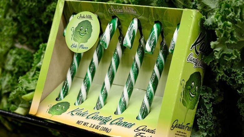 After all the other carb and protein-heavy offerings on this list, McPhee decided to turn its attention to another uber-trendy, yet powerful, comestible. Superfood kale gets turned into a superbly virtue-less version of itself when it gets loaded with sugar and shrink-wrapped in plastic. We assume that this one at least has some fresh green flavors, a hint of bitterness, or maybe even some comforting earthiness to it, all tempered with some mind-blowing sweetness. Like a true match made in veggie heaven! As with all the other McPhee's unusual (some might even say wackadoo) flavors, these outrageous sweets are available in packages of six individually wrapped canes. Perfect for spreading the joy of the season to people you're not crazy about, like your snarky vegetarian brother-in-law with the full head of hair.