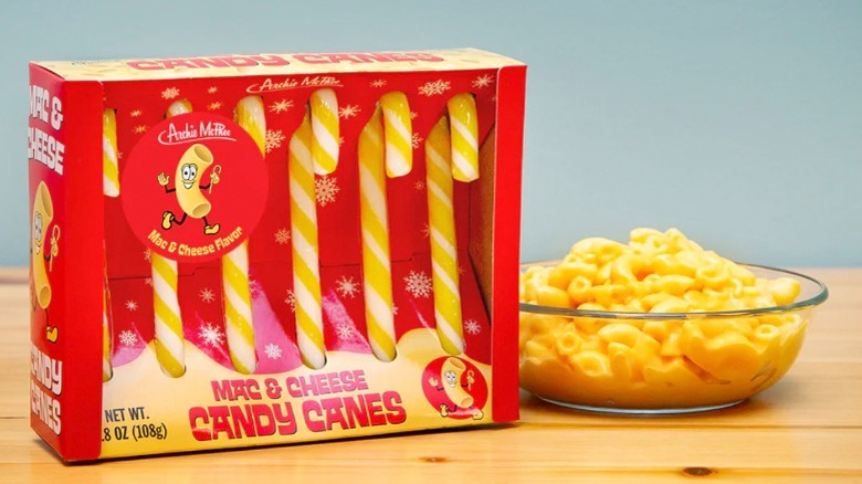 Mac and cheese is iconic, no matter how you look at it. The ultimate comfort food, it's a nostalgic favorite, a weeknight staple, or a holiday side dish, and we've all got our feelings about the classic carby masterpiece. Then, someone like adorable oddball Archie McPhee goes and adds a lot of sugar to it, making it super-portable and a lot stickier than it has any right to be. Mac and cheese candy canes exist, like it or not, and according to Today, lots of people really, really don't like them. The manufacturer describes the flavor as tasting more like out-of-box, instant mac and cheese, rather than the creamy and delicious, homestyle mac and cheese most of us crave, so maybe these would be more appealing to the juice-box and chicken finger crowd, after all.