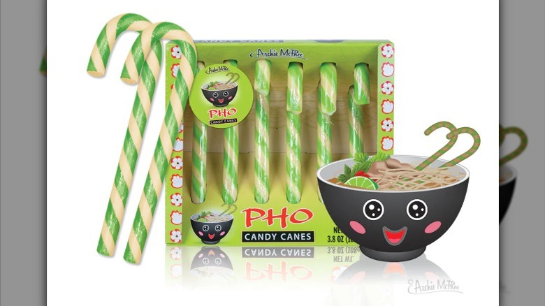Possibly the prettiest color combo on the list, these pho canes from McPhee's also have a rather adorable mascot. A winsome bowl of noodles and broth might not be the best reason to try these, though. We assume that these will have a lovely green herby taste from basil and lemongrass, so you might truly like this one if those flavors are up your street. While an incredibly aromatic, hot bowl of true Vietnamese pho is an absolute delight, we're not sure how close it will get to that phenomenal dish, without any overpowering weirdness or lingering aftertaste. Sweet pho just seems odd. These did receive a fairly positive nod from SFGate, with the reviewer acquiescing that the candy had a decent balance of flavors and sweetness.