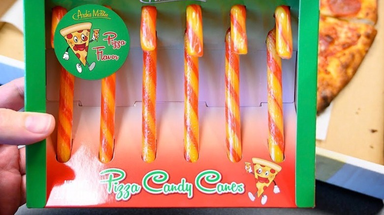 Frankly, pizza candy canes didn't surprise us that much because everybody loves pizza. It's a go-to for so many people that what actually surprised us was that it took someone this long to make it into candy. But that doesn't mean we think they were right to have done it. Like the ketchup flavor, the sweetness of pizza's tomato sauce will play well with the sugariness of candy to a point. But that's where these two flavors part ways; the pizza candy canes are described by David Wahl, Archie McPhee's Director of Awesome (seriously), in an interview with Today, as being cheesy with notes of pizza herbs like oregano. The cheesy richness gives us pause, but it might just entice you to try one with a lovely glass of classic Chianti on the side.